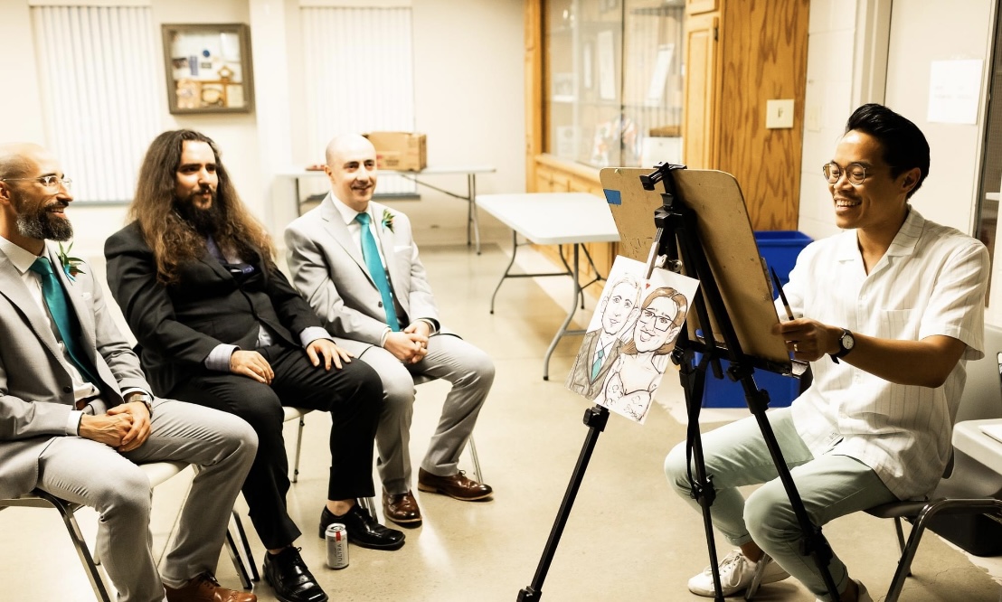 Caricature art at a wedding